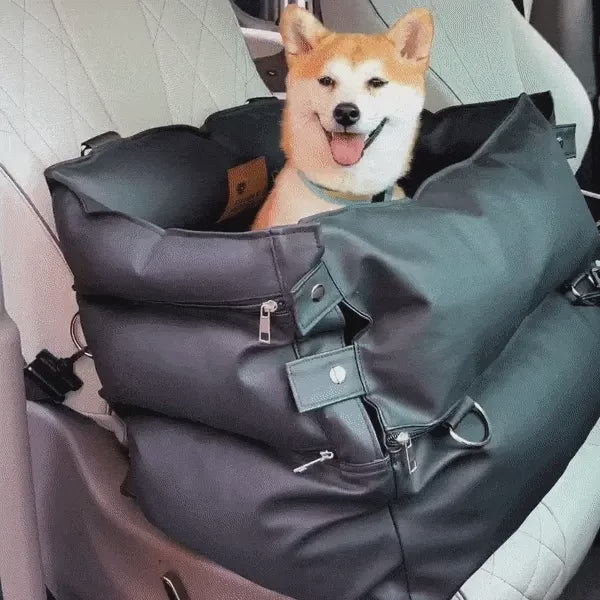Full Leather Dog Pet Car Seat Bed - Fort - FUNNYFUZZY