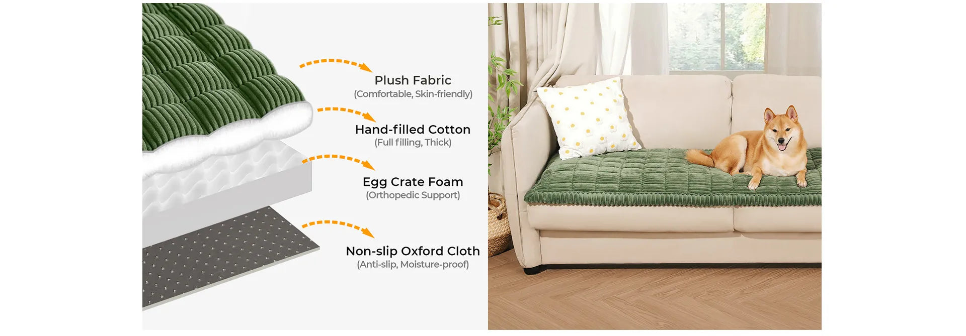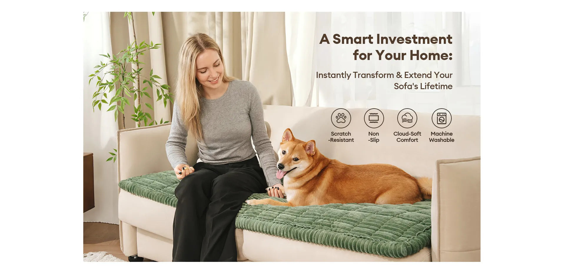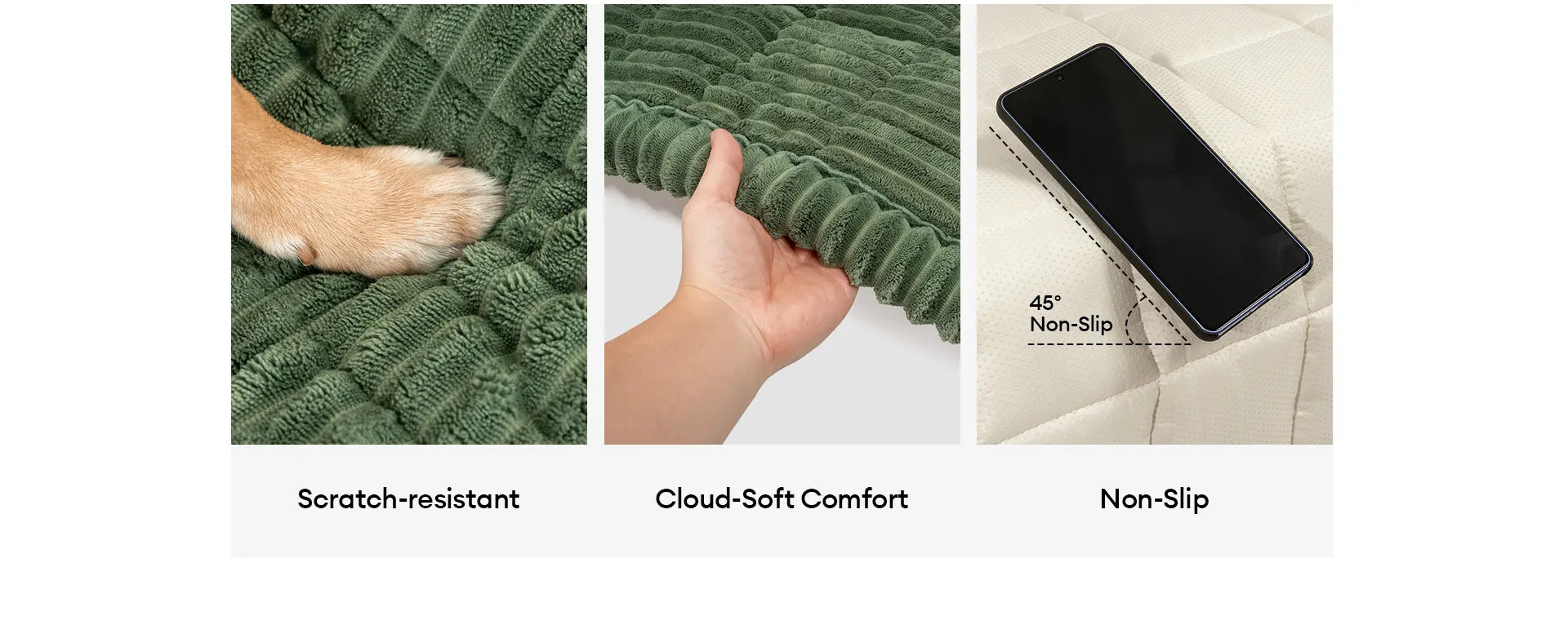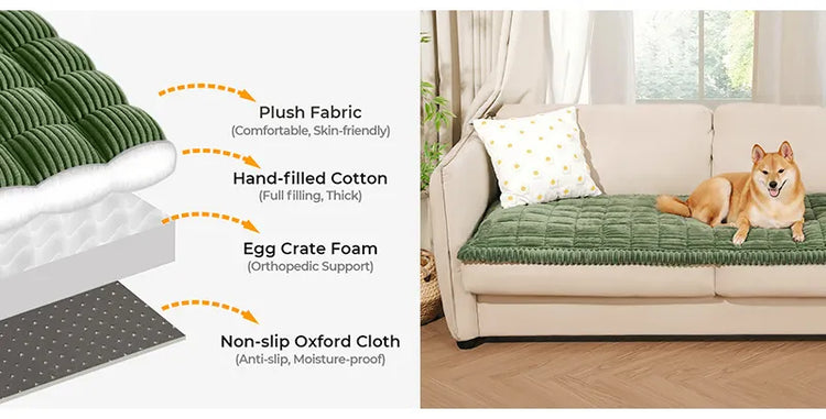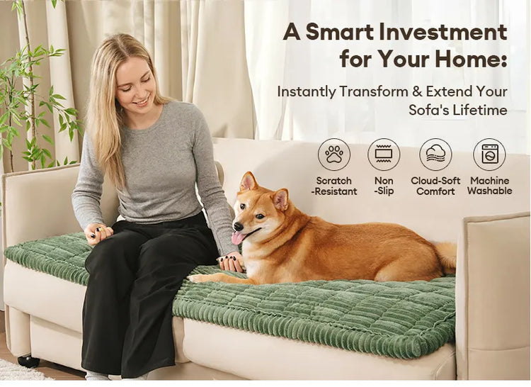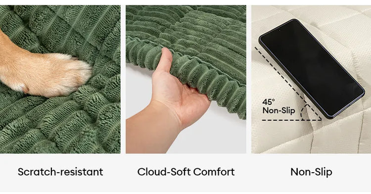 • No más resbalones y deslizamientos: ¿Cansado de las fundas de sofá que nunca se quedan en su lugar? La alfombra para mascotas Lazy Soft Flannel viene con una base antideslizante diseñada para que se mantenga firmemente sujeta a tus muebles. Ya sea que tus mascotas sean juguetonas o simplemente les guste moverse, no tendrás que reajustar la funda constantemente.