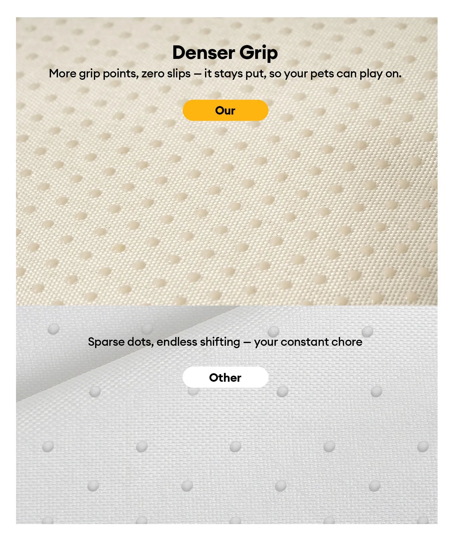 • Se adapta perfectamente a todas las mascotas: No importa el tamaño ni la raza de tu mascota, nuestra amplia alfombra ofrece espacio de sobra para todos. Ya sea que tengas un gato curioso, un perro pequeño o una raza grande, a tus mascotas les encantará tener su propio espacio para estirarse y relajarse.