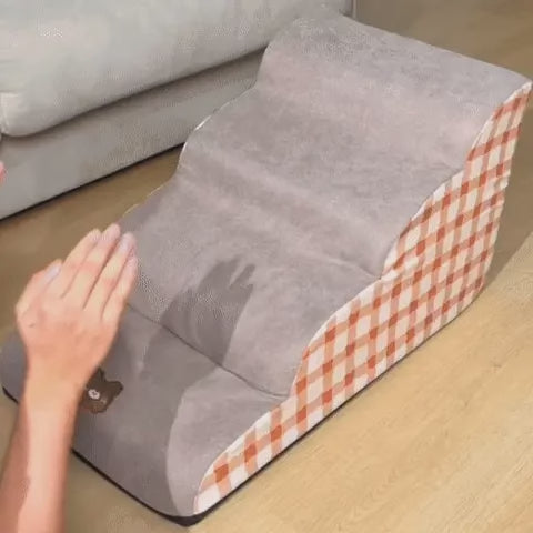 • Protección superior de las articulaciones: Esta ayuda para escalar para mascotas utiliza espuma resistente y suave para garantizar que cada salto sea suave para sus rodillas y articulaciones. ¡Olvídate de la tensión de esos saltos altos!