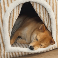Give your furry friend the comfort they deserve with the FunnyFuzzy Striped Cave-Style Warm Deep Sleeping Snug Bed. Designed for both dogs and cats, this 2-in-1 convertible pet house delivers the ultimate balance of warmth, security, and style—perfect for any season or home.